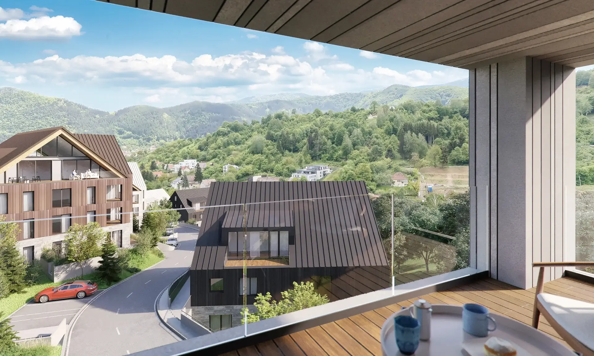 Arhitectura impresioneaza prin spatii care raspund real nevoilor de locuire. Inaltimile de pana la 6 metri din living-uri transforma lumina naturala intr-un element de design, iar fiecare anotimp aduce o panorama diferita. Apartamentele langa padure din Brasov de la Stejeris ofera o conexiune autentica cu natura.